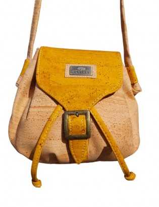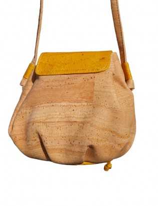 Sac à main en liège naturel et teinté jaune en forme de bourse.